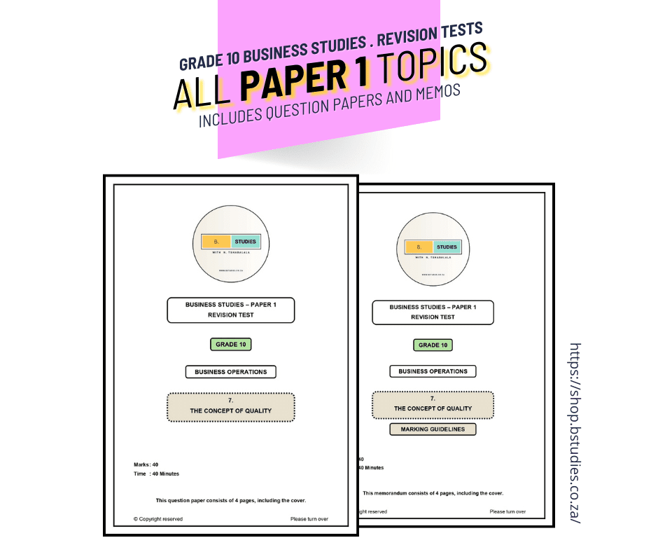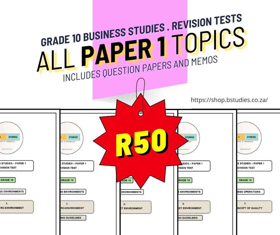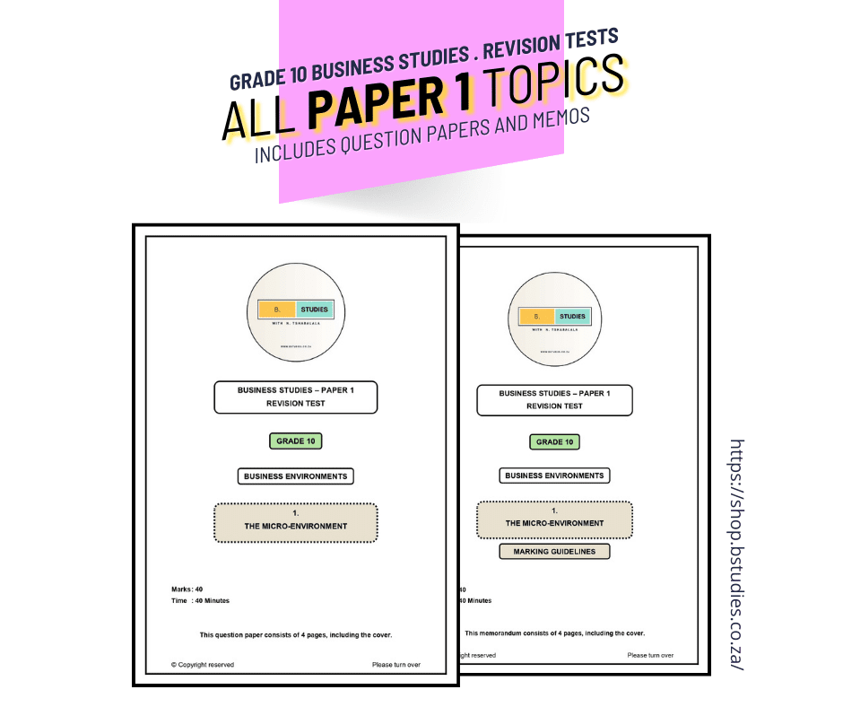 Your purchase gives you access to ALL PAPER 1 TOPICS for Grade 10 Business Studies: