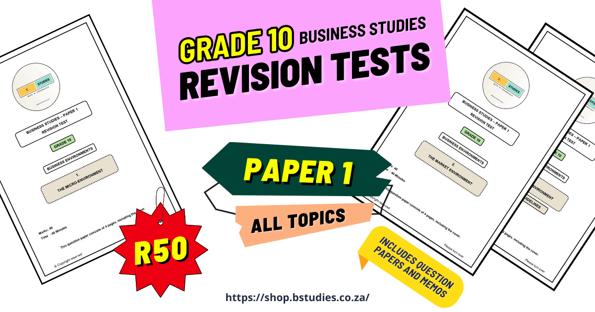 Start studying now to improve your Paper 1 exam marks for Grade 10 Business Studies!