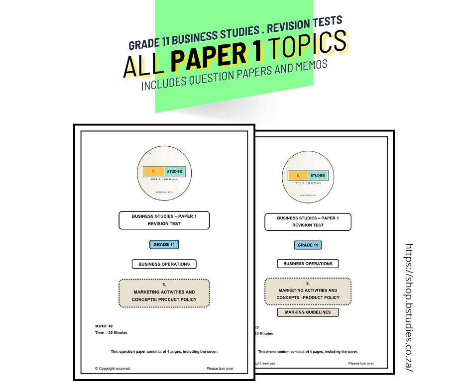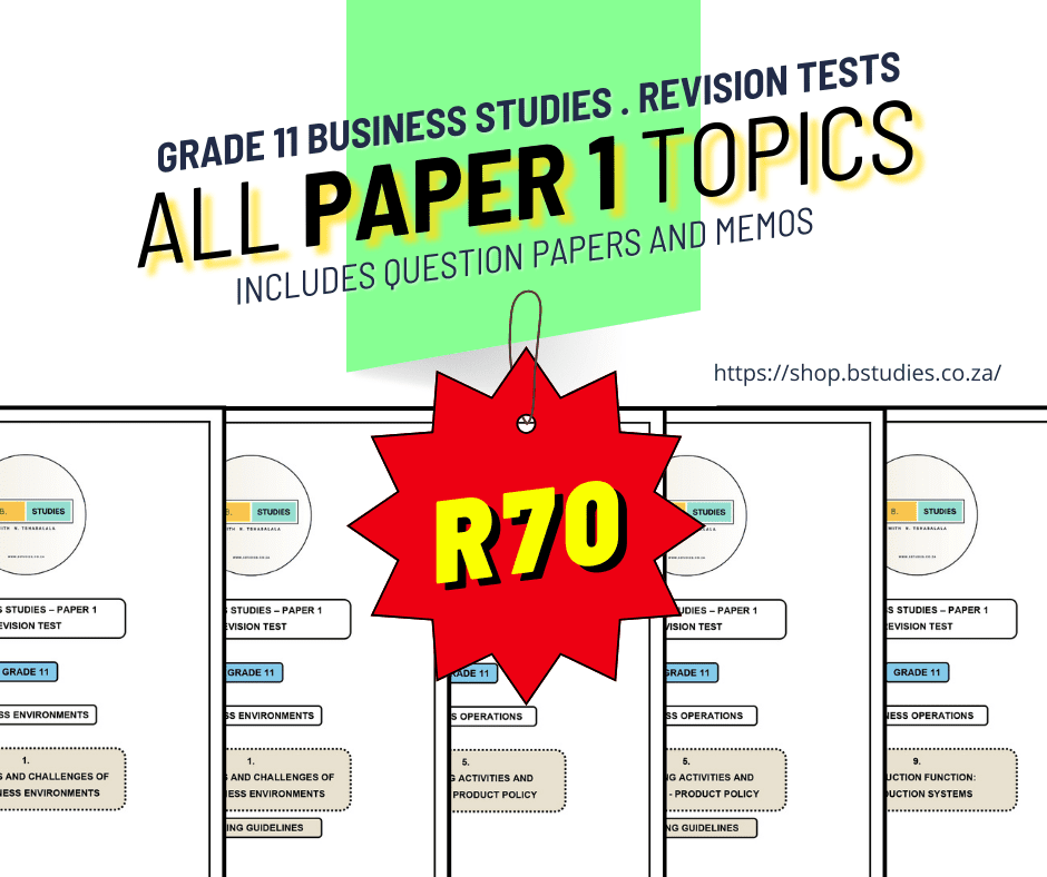 Your purchase gives you access to All Paper 1 Topics for Grade 11 Business Studies: