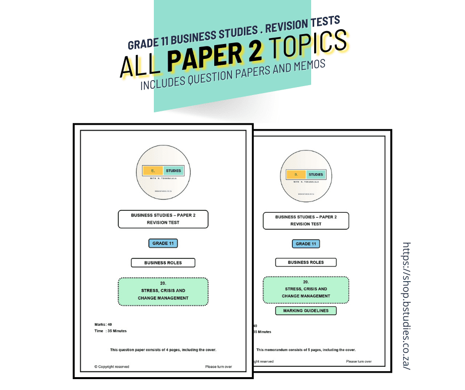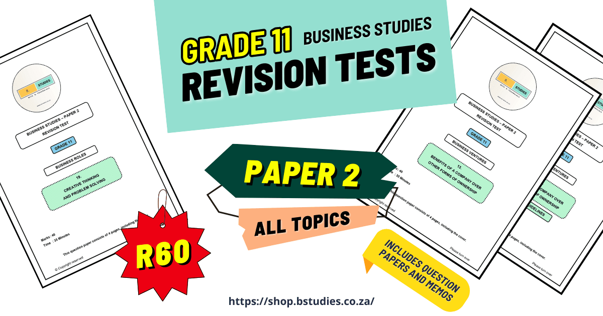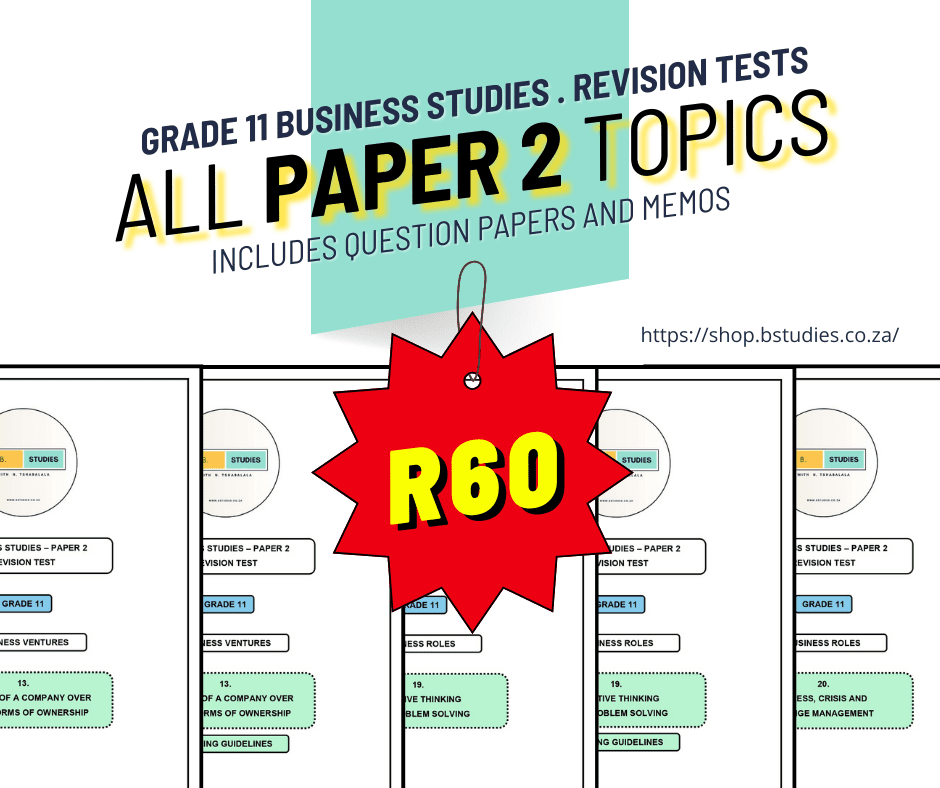 Your purchase gives you access to ALL PAPER 2 TOPICS for Grade 11 Business Studies: