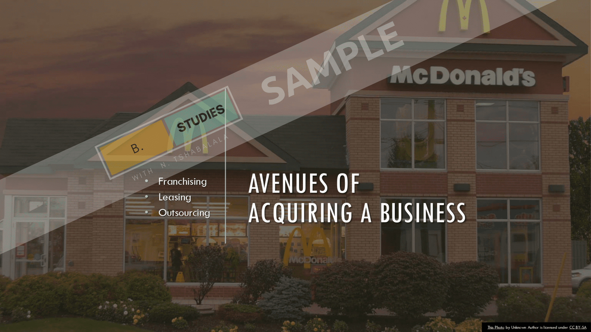This is a PowerPoint presentation, lesson plan, for Grade 11, Term 1 Business Studies, Chapter 6, “Avenues of Acquiring a Business.” With a minimalistic, modern layout with high-quality images, it includes links to explainer videos, to create a dynamic audio-visual learning experience.
